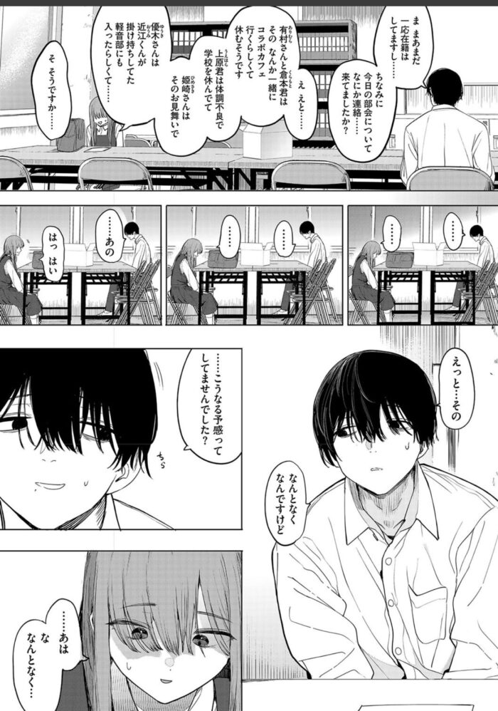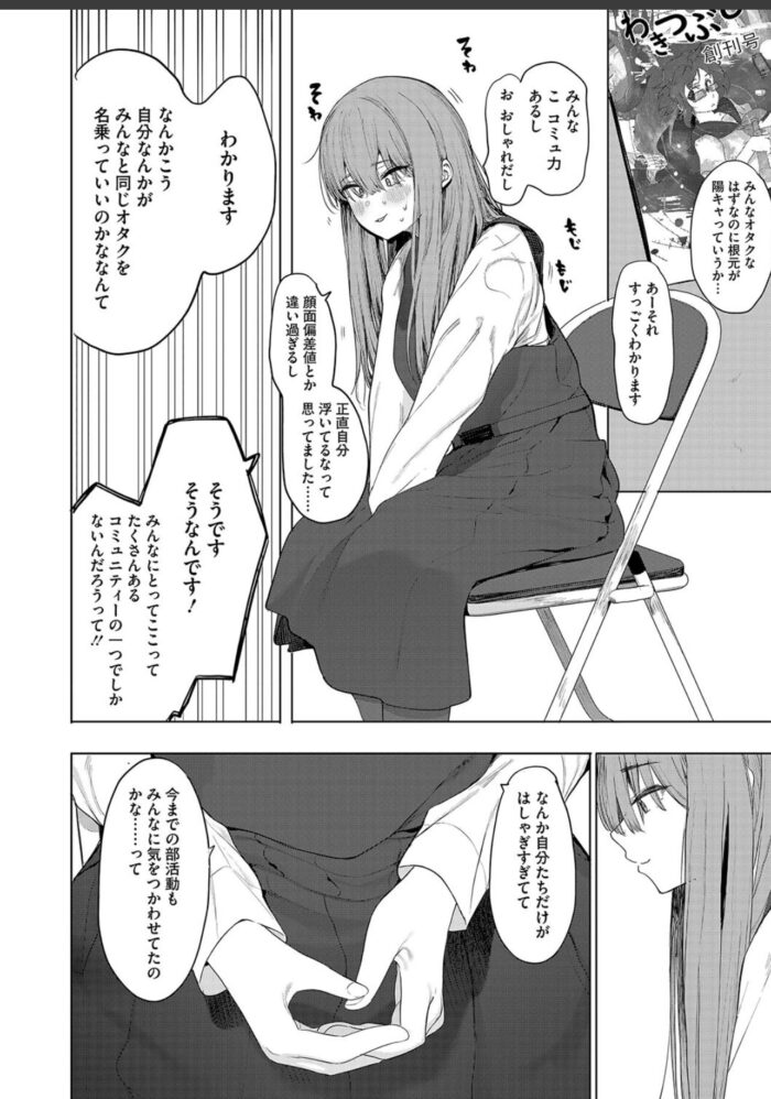 ・セックスは陽キャだけのものじゃねぇ! 6人で同人誌を作るはずのサークルで、実際に原稿を出してきたのはその中でも陰キャな男子と女子の2人だけというシチュエーションは、この2人がこれからそのような行為を行うのだという明確なフラグに思えました。