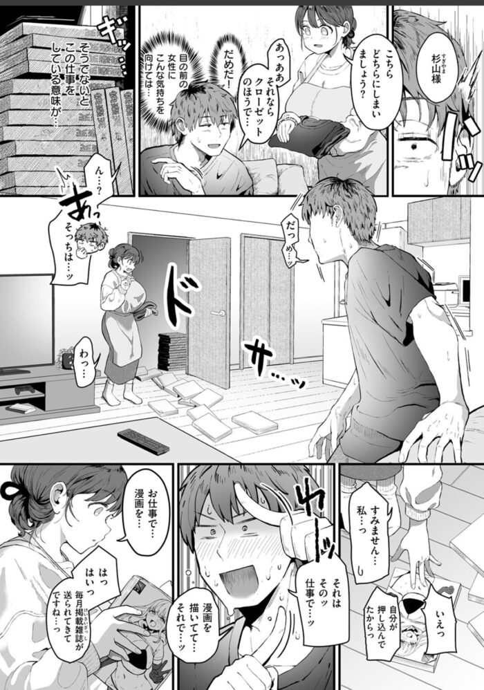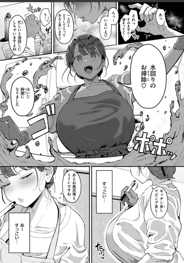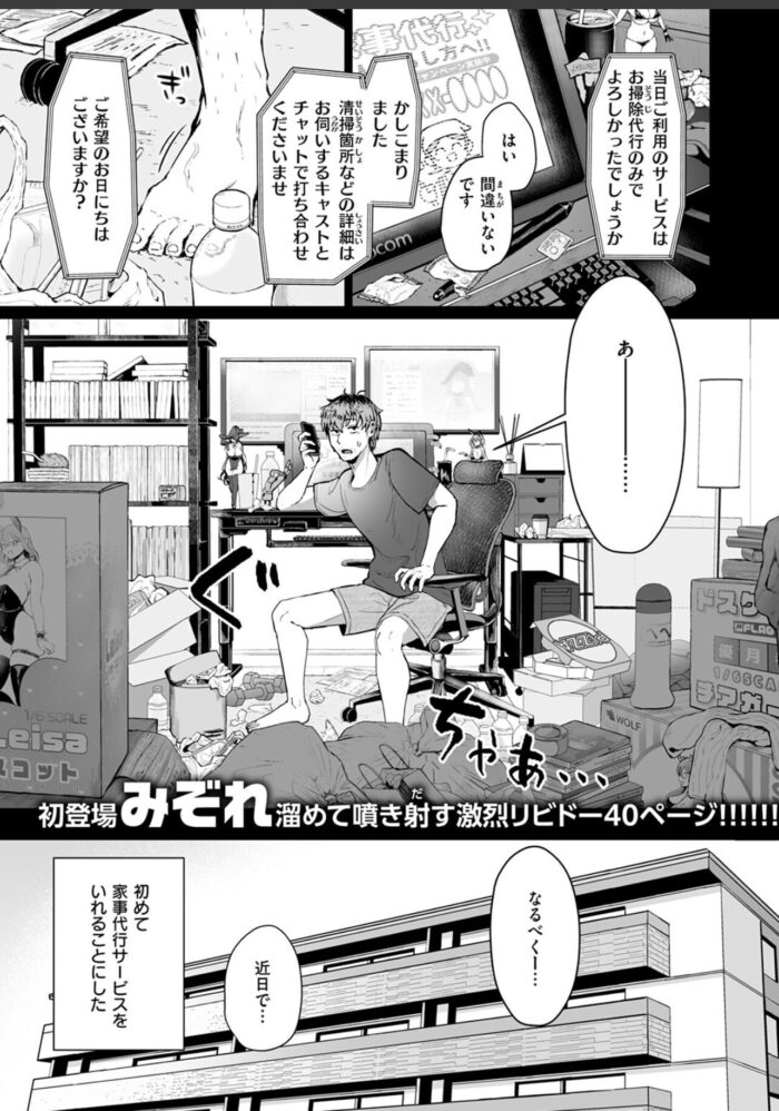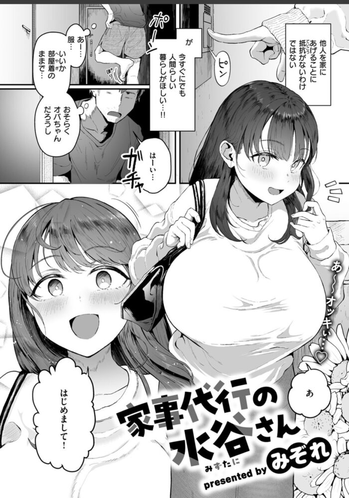汚い部屋をなんとかすべく《家事代行サービス》を利用することにしたエロマンガ家の杉山(すぎやま)。オバちゃんが来ると思って油断していたら、やってきたのはデッッッッカ乳デッッッッカ尻のハウスキーパー・水谷(みずたに)さんだった。