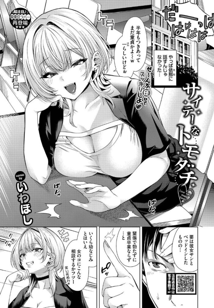 ・新発売のエロ漫画【サイテーなトモダチ】は、彼女がいる主人公が、半年経ってもいまだにセックスに至っていないことを幼馴染に相談する。