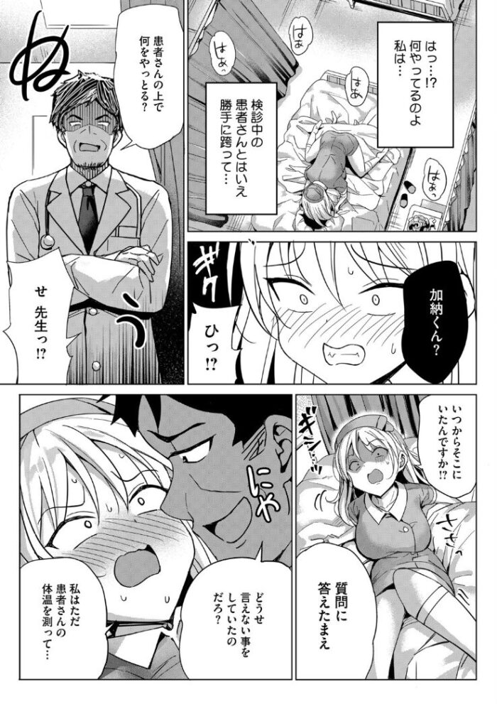 献身的なナースの加納が、自分の気持を抑えられずに眠っている好みの患者にキスしてしまうことから始まる。このままナースに食べられちゃうのかと思いきや、そこへやってきた病院の先生に目撃されてしまった!