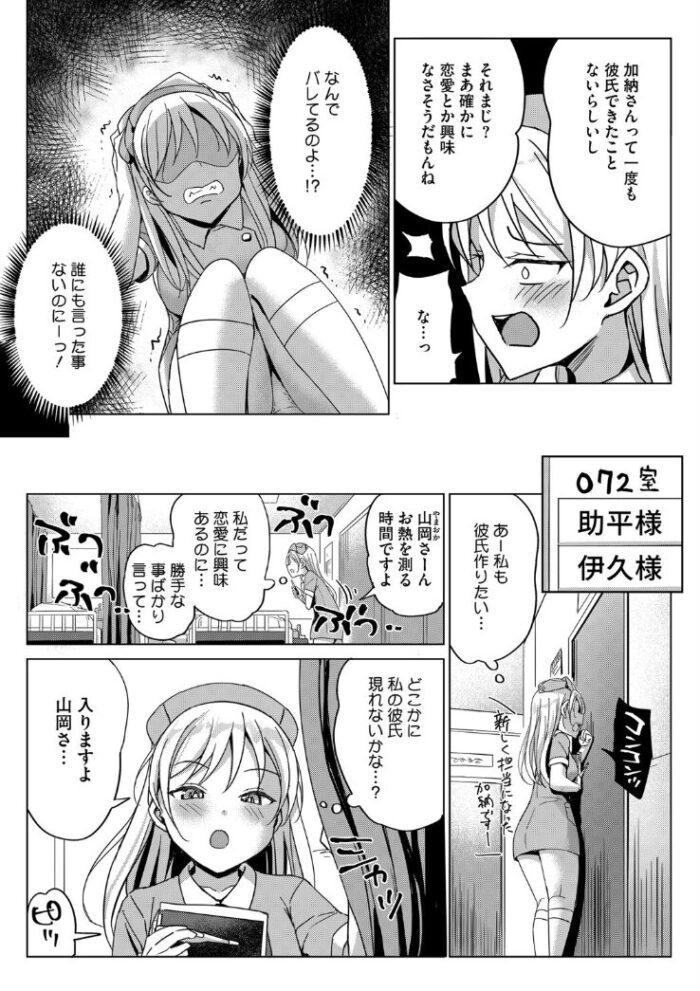 ナースの歪んだ恋愛観【ぶんぼん】処女のナースが好みの患者に興奮しているところを病院の先生に見らちゃった!