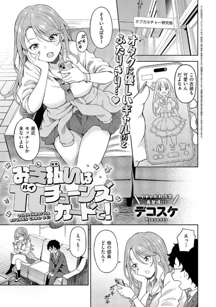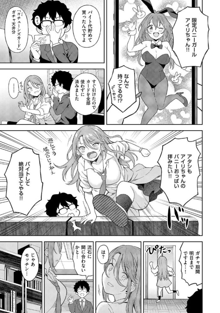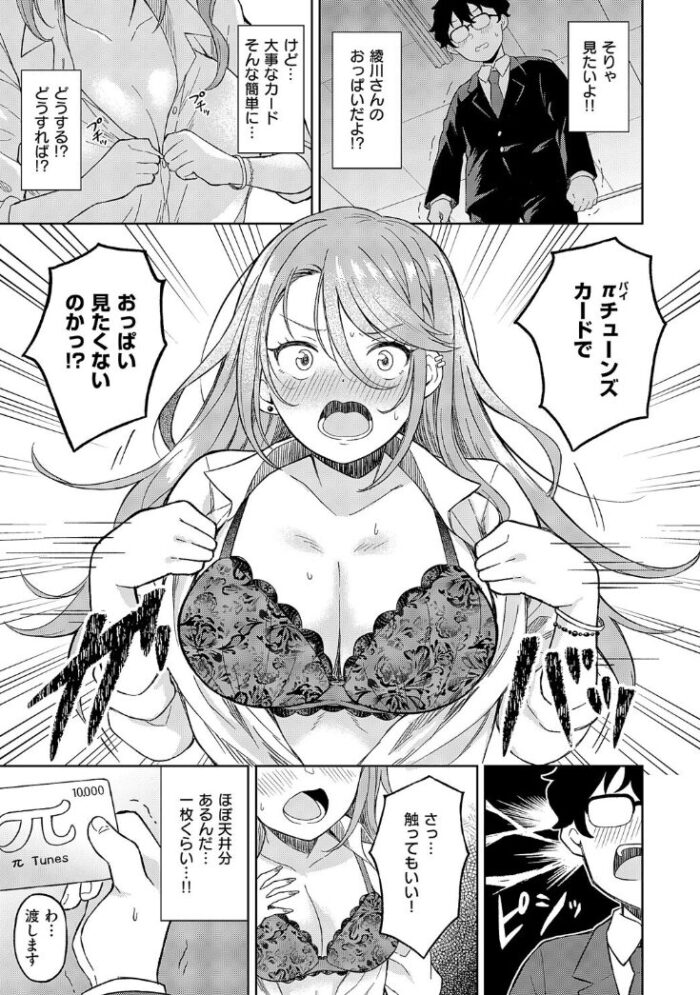・新発売のエロ漫画【お支払いはπチューンズカードで!】は、ギャルの綾川と男子の望月のお話。