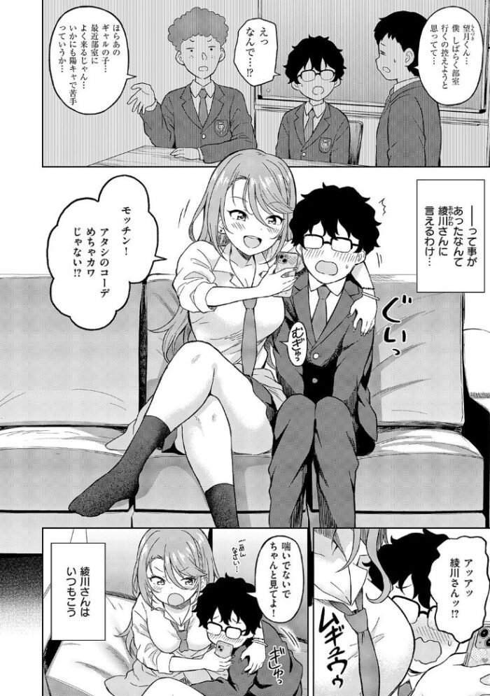 望月はいわゆるオタクくん。望月が部員のサブカルチャー研究部に入り浸るギャルの綾川。陽キャの綾川がいるせいで他の部員が寄り付かなくなっている。
