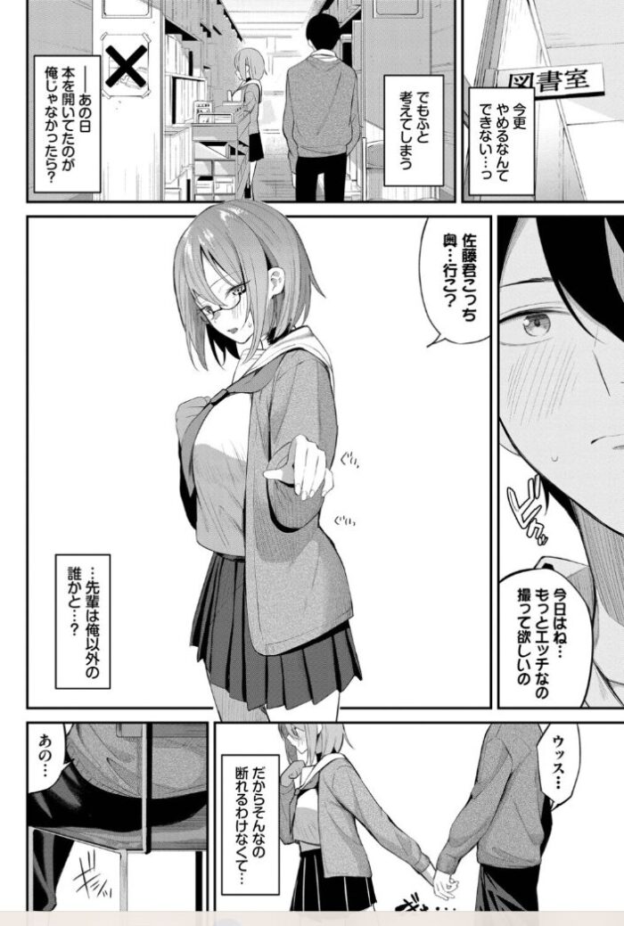 「佐藤くんじゃなきゃだめなの」と両思いの2人。そのまま図書室でセックスしちゃいます。向井先輩のもっと過激な姿を撮影しちゃう佐藤くんなのでした。