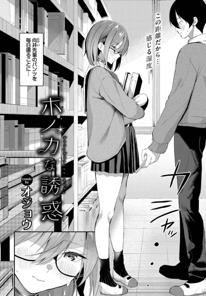 真面目そうな雰囲気の向井先輩は、後輩の佐藤に学校でパンツを盗撮させてくれる。日が経つにつれ露出の多いパンツになっていく先輩。ある日、図書館で「もっとエッチなの撮ってほしい」と誘われる。
