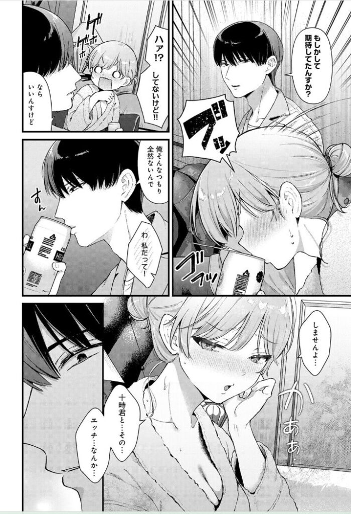 この後エッチするの?私そんな軽い女じゃないし、一応確認してみるかと佐山さんが遠回しに聞いてみた。そんなつもりじゃないと十時くんは言ってるけど、「気が変わった」と言って佐山さんを押し倒しちゃった!!