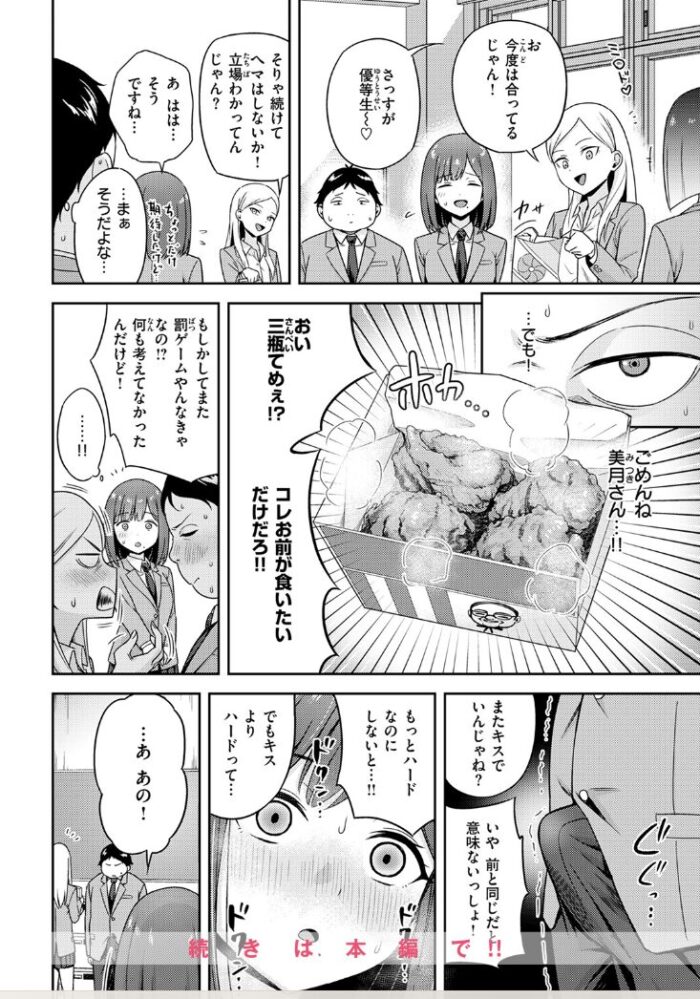 ・新発売のエロ漫画【罰ゲームセックスとかいうご褒美】は、ギャルから罰ゲームを命じられた三瓶と美月のお話。