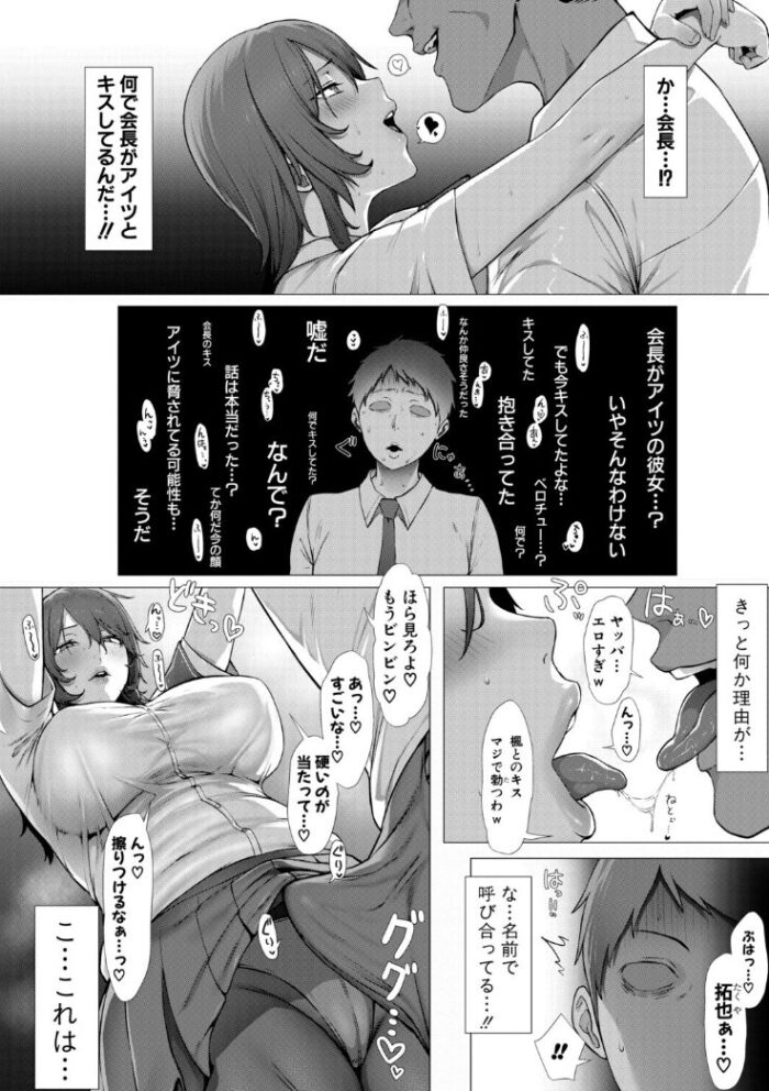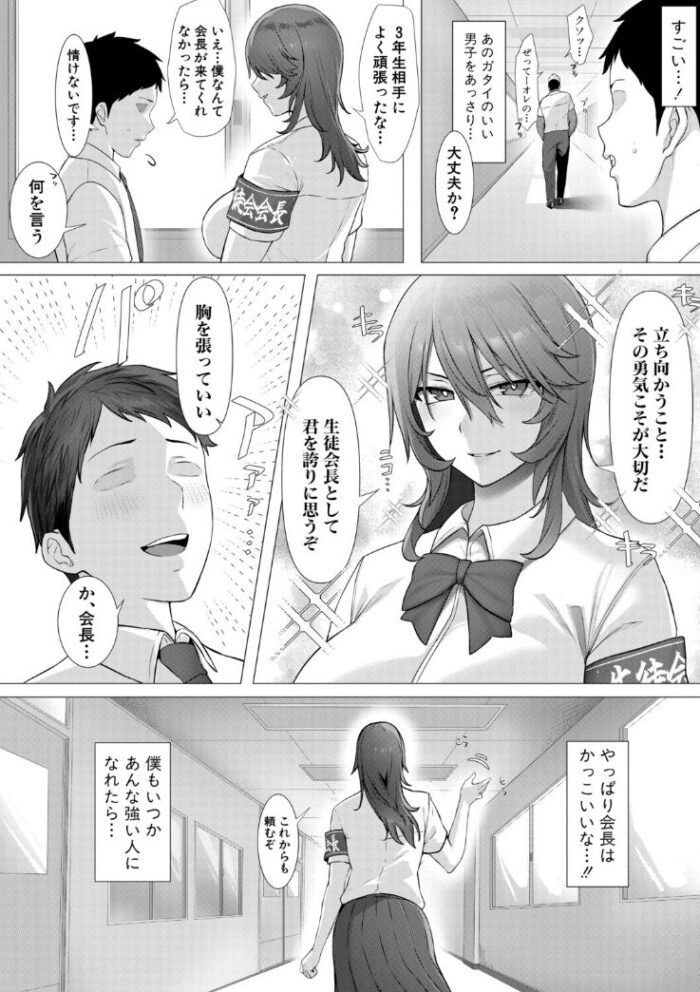 お堅い雰囲気だった会長が男に恥ずかしいセリフを言わされまくる姿、幻滅しつつも欲情してしまう主人公の心情がよく描かれていました。