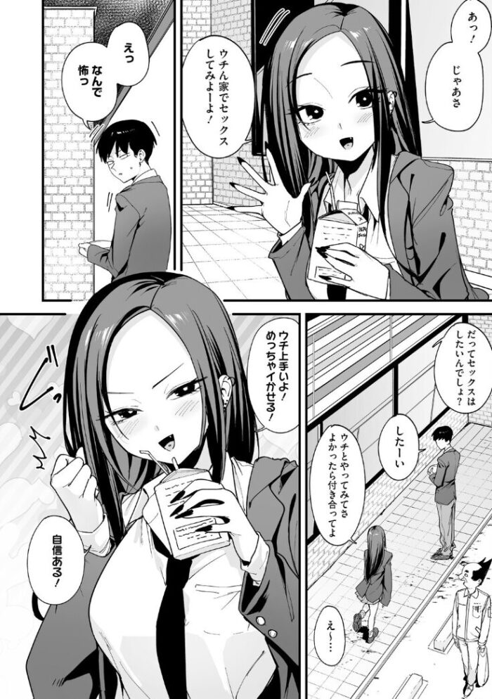 ギャルのヒロインの子がとても初々しさがあって良かったです。男主人公と付き合いたいという必死さが良かったです。    ただし男主人公の方が最初は告白されても付き合わないと言うが、ヒロインの子がうちとセックスしてみようという提案からセックスをしていくことになっていく流れになっていたので、こうした流れの大人漫画も良いかなと思いました。