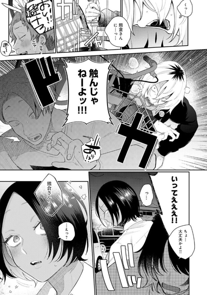 ・新発売のエロ漫画【傷口と蜜<後編>】は、ガテン系お姉さん・熊倉さんのお話。
